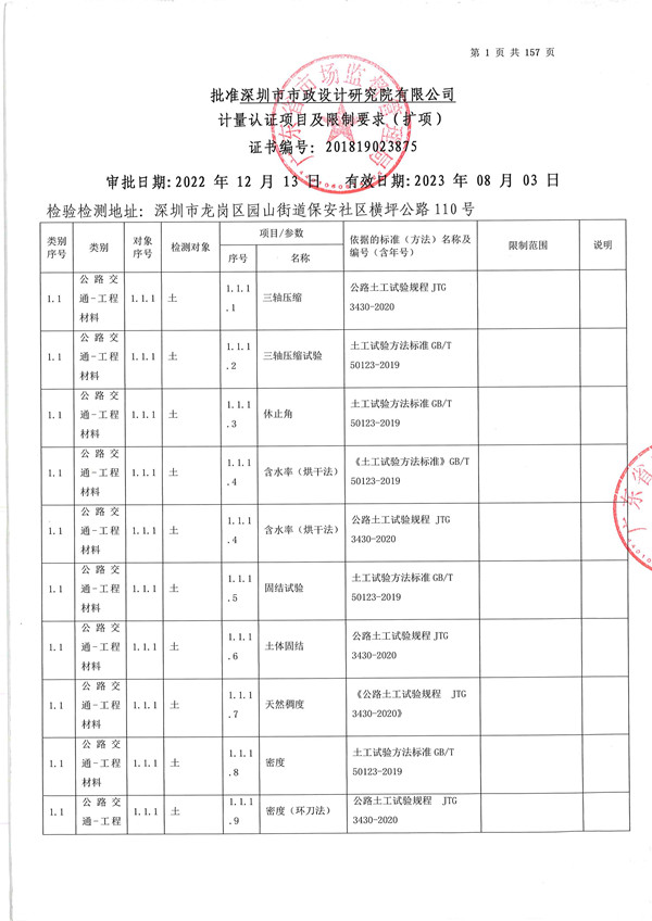 2022年11月,廣東省質(zhì)量監(jiān)督局委派6名專家來公司檢測(cè)試驗(yàn)中心開展為期2天的現(xiàn)場(chǎng)評(píng)審。在資料審核和現(xiàn)場(chǎng)實(shí)操考核結(jié)束后,評(píng)審專家一致認(rèn)為場(chǎng)地、設(shè)備設(shè)施、人員及管理體系等符合評(píng)審要求,準(zhǔn)予通過現(xiàn)場(chǎng)評(píng)審。經(jīng)過為期30多天的審批,廣東省質(zhì)量監(jiān)督局于12月19日向公司發(fā)放擴(kuò)項(xiàng)證書。至此,公司檢測(cè)能力由原來的594項(xiàng)達(dá)到了44個(gè)專業(yè)1451項(xiàng),參數(shù)覆蓋了目前鐵投城際鐵路項(xiàng)目所需參數(shù)的90%。
