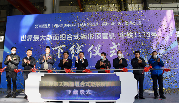 2023年1月6日,公司董事長劉樹亞作為深圳地鐵12號線二期的設(shè)計(jì)單位及廣東重點(diǎn)專項(xiàng)科研單位代表,在鄭州中鐵裝備國家TBM產(chǎn)業(yè)化中心參加了世界最大斷面組合式矩形盾構(gòu)頂管機(jī)“中鐵1179號”下線儀式。該設(shè)備將用于廣東省重點(diǎn)專項(xiàng)繁華城區(qū)地鐵暗挖關(guān)鍵技術(shù)示范應(yīng)用車站——深圳地鐵12號線二期沙三站的建設(shè),沙三站是12號線二期工程的第三個(gè)車站,車站公共區(qū)采用機(jī)械化暗挖組合頂管工法建造,該工法對促進(jìn)地鐵車站建設(shè)工法創(chuàng)新具有革命性意義。