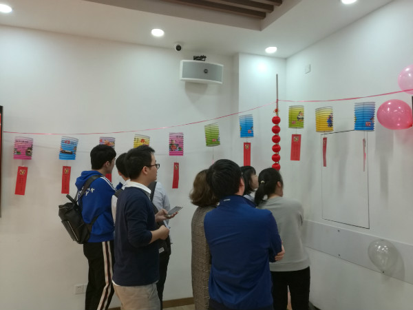 活動的第二個環(huán)節(jié)是“猜燈謎”,猜燈謎又稱打燈謎,是從古代流傳至今的元宵節(jié)特色活動。團委精心為員工準備了數(shù)十個燈謎掛在燈籠墻的燈籠下,大家對這一傳統(tǒng)民俗文娛活動形式興致很高,時而低頭思索,時而相互討論,熱鬧非凡。