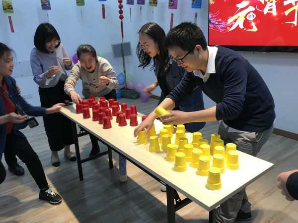 最后是精彩的游戲環(huán)節(jié),通過簡簡單單的紙杯設(shè)置了多個趣味十足的游戲,大家一同參與,緊張刺激而又其樂融融。
