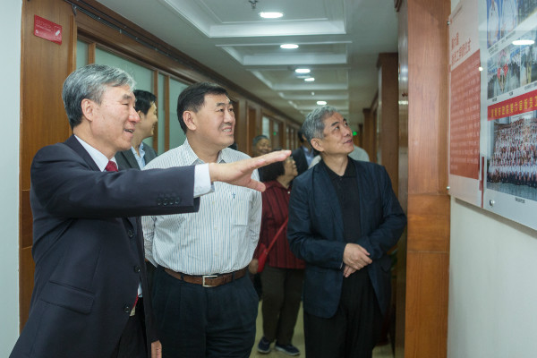 董事長(zhǎng)陳宜言設(shè)計(jì)大師與嘉賓參觀院士(專(zhuān)家)團(tuán)隊(duì)風(fēng)采墻