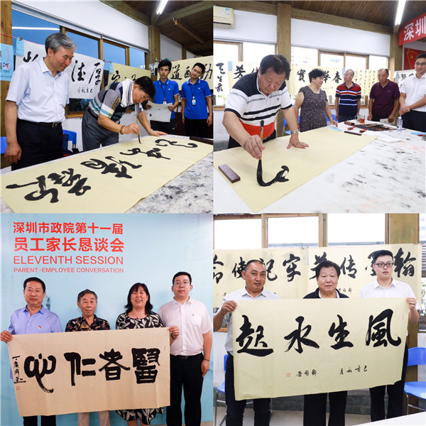 懇談會后,家長們來到公司八樓“職工之家”,參加了書畫交流活動。鄒國榮、董兵團(tuán)、丁廣偉、徐怡等多位書畫家圍繞家長懇談會主題,現(xiàn)場揮毫潑墨,為家長們即興創(chuàng)作,一幅幅遒勁有力的書法和栩栩如生的畫作,展現(xiàn)了藝術(shù)家深厚的文學(xué)修養(yǎng)和藝術(shù)功底,書畫現(xiàn)場意趣盎然、墨香四溢。