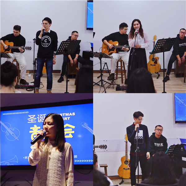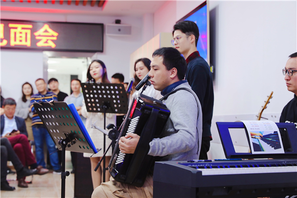 演出現(xiàn)場(chǎng),樂(lè)團(tuán)成員通過(guò)豐富的互動(dòng)游戲、詼諧的串場(chǎng)、形式種類多樣的音樂(lè)表演給同事們帶來(lái)了一場(chǎng)視聽(tīng)盛宴。開(kāi)場(chǎng)一首歡快的樂(lè)器合奏《鈴兒響叮當(dāng)》便點(diǎn)燃了觀眾的熱情;節(jié)奏感和感染性極強(qiáng)樂(lè)器三連奏《The Game Is On》《Star Sky》《He's A Pirate》將演出的氣氛推向高潮;《成都》《小幸運(yùn)》《曾經(jīng)的你》《天黑黑》《貝加爾湖畔》等不同形式的曲目表演讓現(xiàn)場(chǎng)觀眾樂(lè)享其中。特邀嘉賓Yakup老師的精彩演出使得現(xiàn)場(chǎng)氣氛熱烈異常;最后,樂(lè)團(tuán)組織現(xiàn)場(chǎng)觀眾即興合唱《遇見(jiàn)》《后來(lái)》,現(xiàn)場(chǎng)的歌聲記錄了同事們?yōu)橐魳?lè)而感動(dòng)的瞬間。
