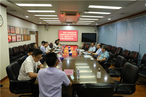 2020年7月21日,廣州地鐵設(shè)計研究院股份有限公司(以下簡稱“廣州地鐵院”)黨委副書記、董事長農(nóng)興中,黨委委員、副院長趙德剛,深圳分院院長陳小林一行來公司交流座談,公司黨委書記、董事長劉樹亞,黨委副書記、總經(jīng)理劉勁松,黨委副書記劉啟勝,副總經(jīng)理丘建金,技術(shù)專家王建新及軌道院相關(guān)負責(zé)人熱情接待,并在市政設(shè)計大廈主樓三樓召開交流座談會。