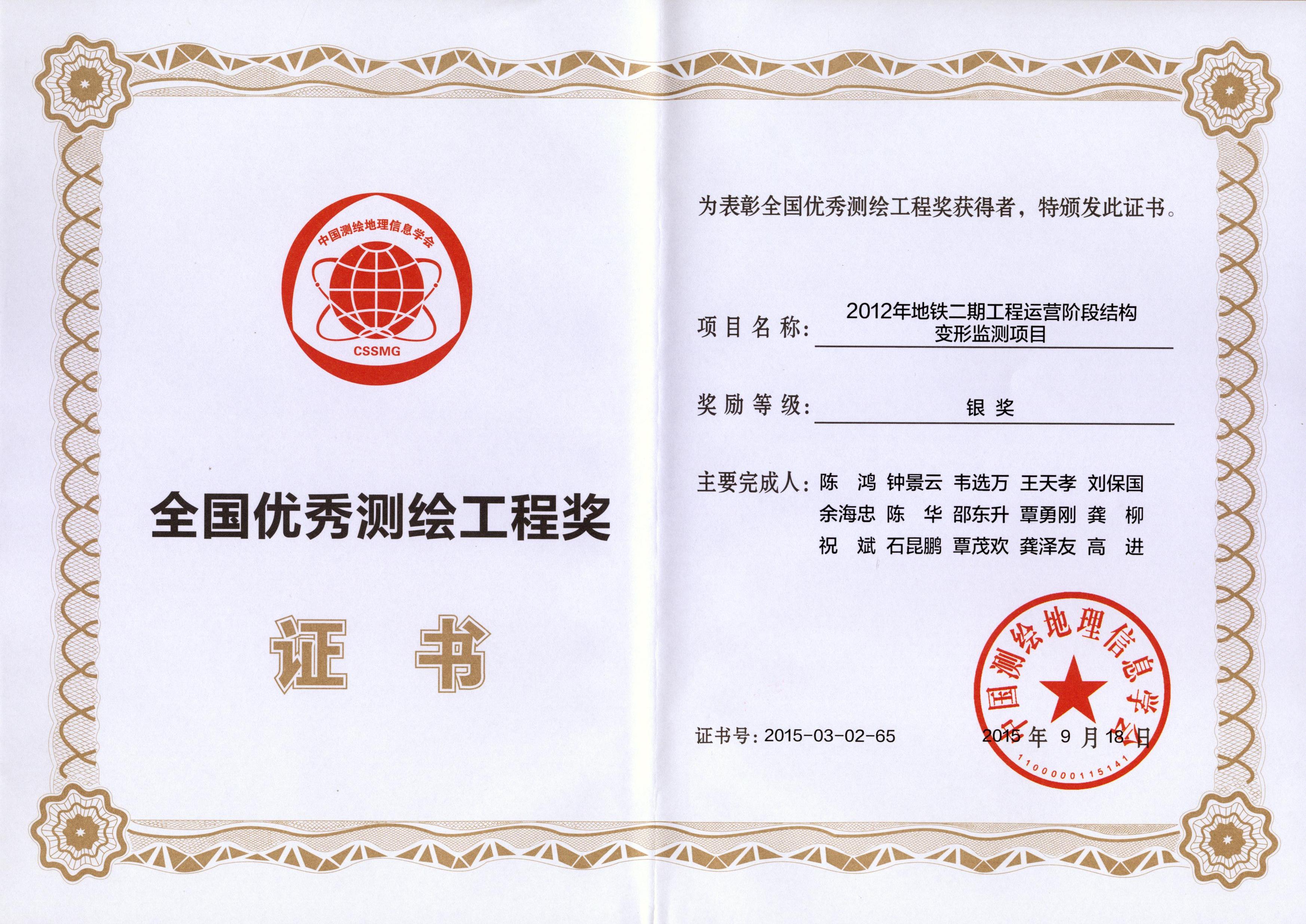 2012年地鐵二期工程運營階段結(jié)構(gòu)變形監(jiān)測項目